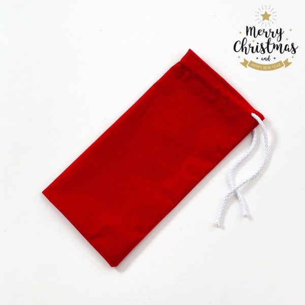 Σουρωτό βελούδινο πουγκί σε κόκκινο χρώμα με λευκό κορδόνι σε μεσαίο μέγεθος.